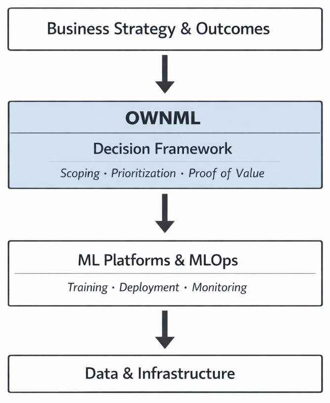 OWNML provides a common structure teams use to scope ML work, align with stakeholders, and evaluate progress in business terms.